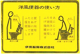 In those days flush toilets of Western style were still rather unknown in Japan. The instruction was necessary, as people often tried to squat over them. Nowadays the Japanese have the most developped technology concerning flush toilets.